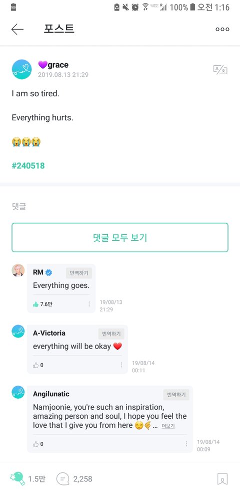 나요즘 혐생힘든데 진짜 나한테 너무큰 힘이돼 방탄ㅠㅠㅜㅜㅜ