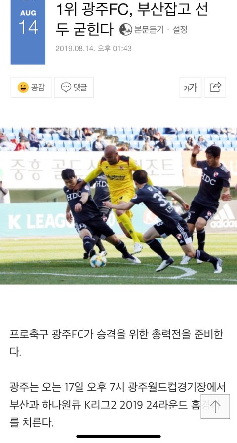 │1위 광주FC, 부산잡고 선두 굳힌다│