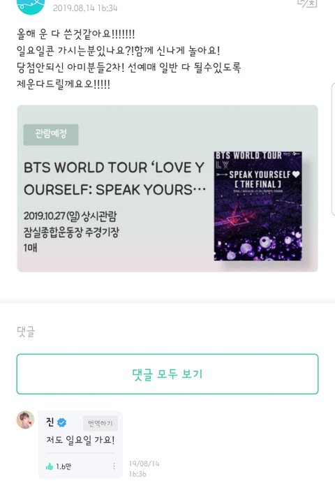 콘서트 늘려달라고 건의한데ㅋㅋ 그밑에 찌미 빨리가서 얘기하라고 재촉중ㅋㅋㅋ