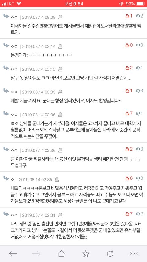 군대도 줄어들고 편해지고 월급도 많이나오니까 슬슬 여자들한테 생색낼것들이 줄어들어서 억울해서 어쩜?ㅋㅋㅋㅋㅋㅋㅋㅋㅋㅋㅋㅋㅋㅋㅋㅋㅋㅋ이런거 볼때마다 개통쾌햌ㅋㅋㅋㅋㅋ완전 뚜까맞음ㅋㅋㅋㅋㅋㅋㅋ