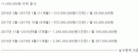 원슨데 이거 정확한거아니야 어느 소속사든 가수들 정산액 이렇게 공개된적없음