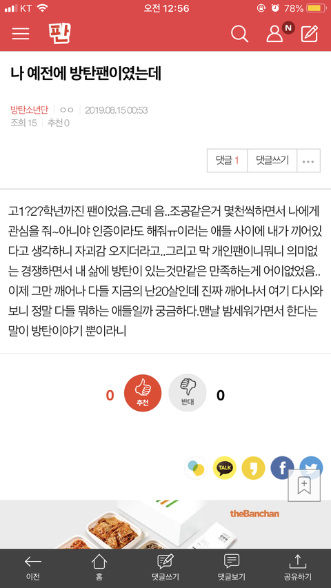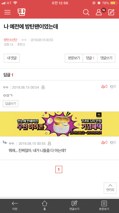 !!<조방>밑밑 나 예전에방탄팬이였는데 글,댓여기서봐
