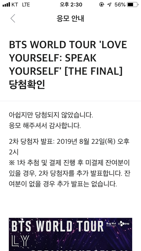 기대를 막 하진 않았지만 ㅠㅠ 그래도 너무 가고싶은 마음에... 그냥... 혹시 나에게?? 하는 마음으로 확인했다가 솔직히 당첨 안된거보고 많이 속상했는데...