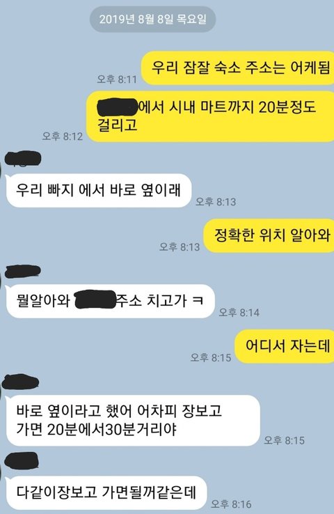 8월 8일 전에도 친구랑 단둘이 만났을때 펜션주소나 이름좀 물어보라고 했는데 반응은 저랬습니다.