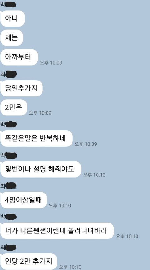 박이 계속 당일추가인원이 2만원이라고 우기는 친구입니다.