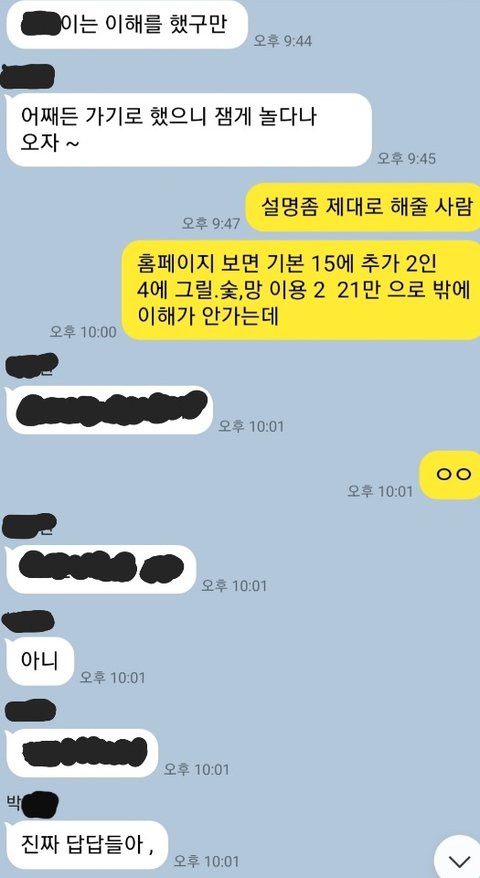 가기전부터 친구의 태도부터 불만이 있었는데, 사전에 얘기도 없던 친구생일 케익 N빵에 친구 생일 챙기러 왔나 싶어 화가났고, 성수기라 6만원 8만원이 더 붙는것도 의심이 들어서 펜션에