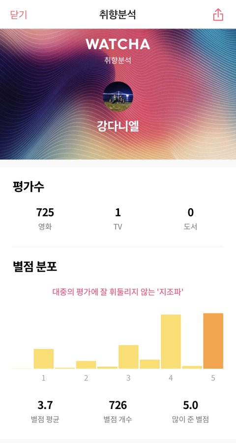 왓챠는 실명 아니라도 가입 가능해서 저게 강다니엘 계정인지도 확실하지 않고 ㄹㅇ 본인 계정이라도 연생 때도 아닌 쌩 일반인 시절 계정인데 뭐가 문제임? 평점 준 영화도 725개나 되는데 몇백개의 좋은 영화 평점들은 다 거르고 겨우 2~3개 트집 잡아서 어그로 끄는 거 ㅈㄴ 애잔해ㅋㅋㅋ 그리고 너네가 문제 삼는 그 2~3개 영화 평점 준 것도 깔 이유가 됨? 영화 평점이란게 영화 스토리가 마음에 드냐 안 드냐에 따라 매겨진다고 생각하는 빡대가리는 아니지? 실제로 그 영화들 평점 검색해보면 스토리는 기분 나빠도 배우의 연기력이나 퀄을 높게 평가해서 평점 10점 준 사람들도 많아ㅋㅋㅋ 너네 논리면 살인, 강간 같은 범죄를 주제로 한 영화들은 무조건 개쓰레기임? 거기 출연한 배우들은 뭐가 되고ㅋㅋㅋ?