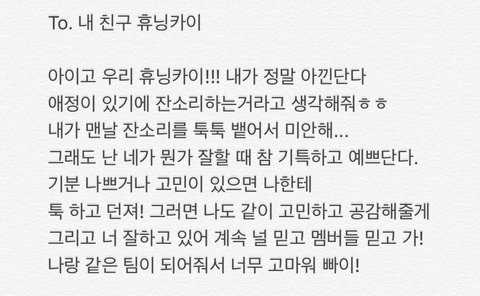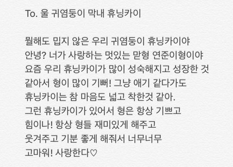 멤버들이 휴닝이한테 쓴 롤링페이퍼