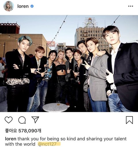 loren gray 라고 미국에서 바비 인형 닮은 꼴로 유명한 가수(유투버)가 행사에서 만난 nct와 함께 찍은 사진을 올림