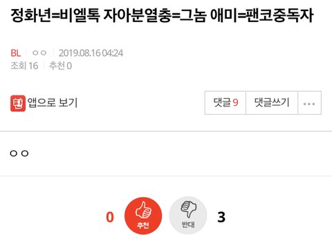세훈팬톡 가면 쟤 혼자 하루종일 도배하고 엑소팬톡에서는 추천조작 몇십개 계속 해서 골치아프다고 다들 먹금하는 어그로급 악개야