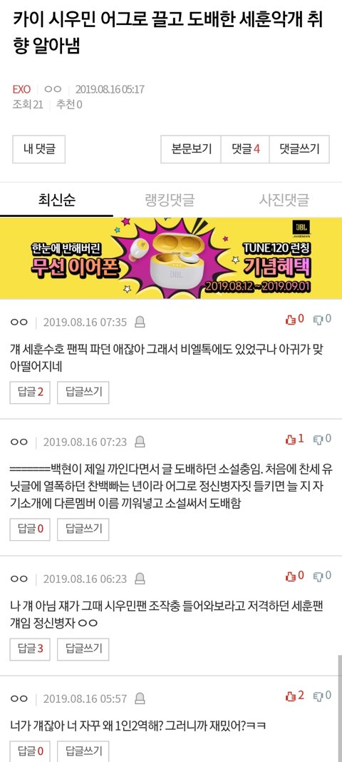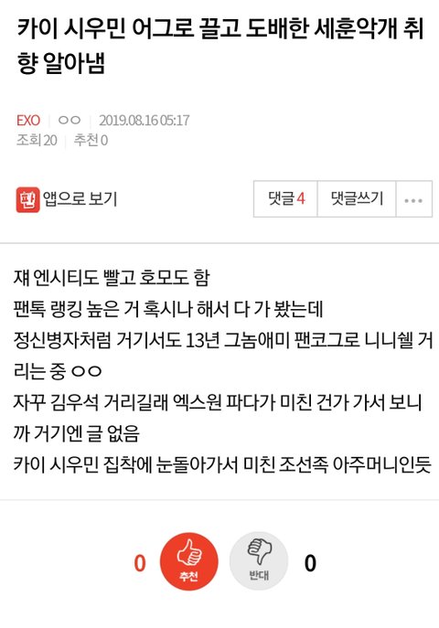 ⬇️카이 시우민 어그로 끌고 도배한 세훈악개 취향 알아냄 여기서