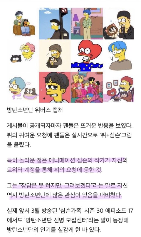 심슨작가는 아직 뷔 안 그렸어ㅋ 아래는 팬이 그린거라고!