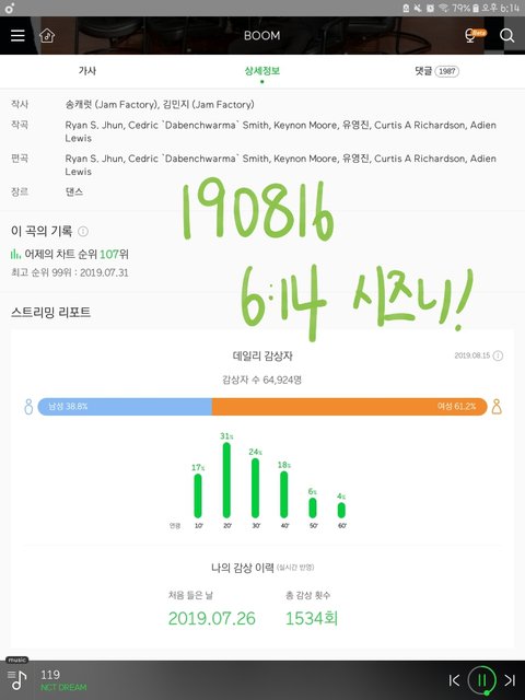 안정적인 음원순위 유지를 위해 잊지말고 BOOM 한번씩이라도 들어주기♡