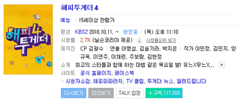 이미 드라마도 tvn jtbc 쪽이 더 화제성 오지고 예능은 거의 나피디 혼자 독주하고 있지ㅋㅋㅋㅋ 1박2일 이후 신서유기 강식당으로 나피디 예능은 웃기다는 인식 제대로 다시 한 번 박았고 예능에 잘 출연하지 않는 유명 배우들도 나피디가 런칭하는 프로엔 나오잖아 흥행 보장에 나피디 사단의 재밌는 편집실력과 논란이 최대한 나지않게 편집하는 능력이 ㅆㅅㅌㅊ라