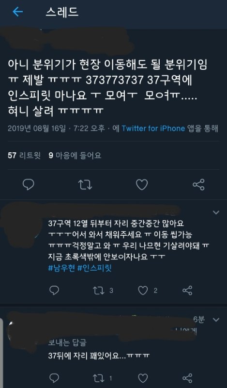 서치해보니 37,38구역 뒤에 빈자리 많은것 같아 지금 방송상으로는 ㅇㅅㅌ색이랑 섞여서 잘안보임 무조건 모여야댐ㅜ