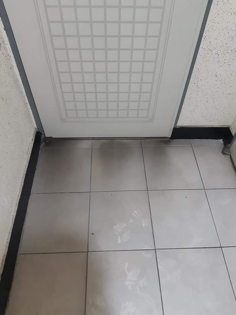 저거 불났던 집이야. 아직도 안쪽에서 나온 불이 바닥을 검게 그을린 흔적이 남아있잖아. 문도 새걸로 바뀌었지만 화마가 한 가정을 삼킨 비극의 흔적이 남아있네