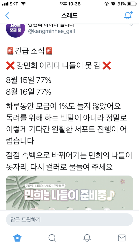 데뷔+생일 서포트 모금액이 지금 하루동안 1%도 안올랐대ㅠㅠㅠㅠㅠ 지금 마감까지 이틀 남았는데 완전 비상이야ㅠㅠㅠㅠㅠㅠㅠㅠㅠㅠ 모금액 9170원부터니까 다들 협조좀 해줘ㅠㅠ..
