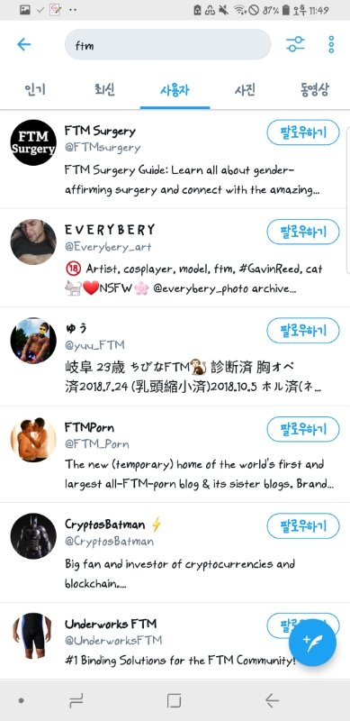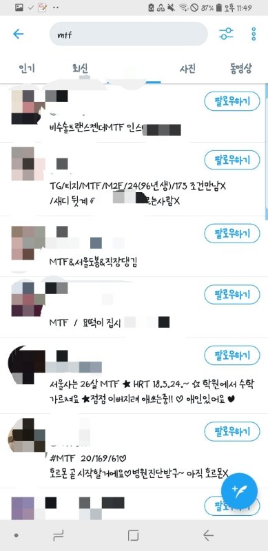 ++) 다시 글 수정할줄은 몰랐는데.. 왜 ftm은 뭐라안하냐는 댓글 몇개보여서 추가했어! 성에 대해 개방적인 트위터 서치를해도 mtf는 많아도 ftm은 거의 없는 상태야 있어도 가장먼저 뜨는게 외국인? 인거 같아 혹시 몰라서 웬만한건 다 가렸고 혹시 문제있으면 수정할게