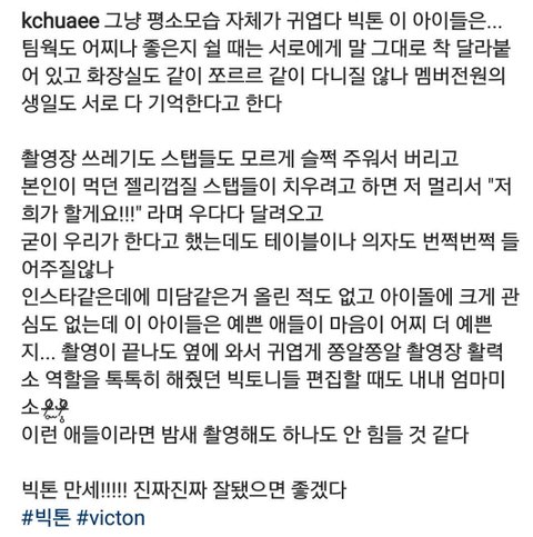 6명 다 막내 엄청 아끼는 것도 그렇고 븨앱 보면 서로 의지하고 믿는데 티가 남 개개인의 인성은 내가 알 수 없지만 7명이서 분위기가 좋은건 알겠음
