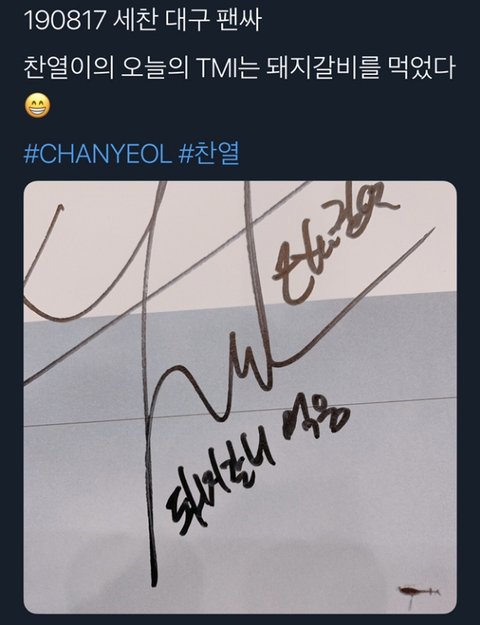 찬열이 오늘 돼지갈비 먹었다는 vii