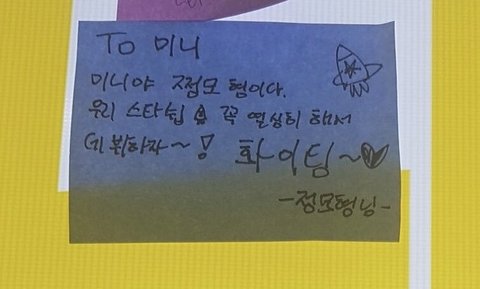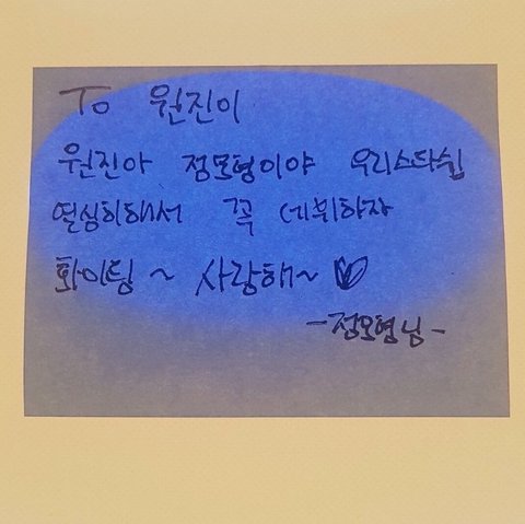 프듀 시절 동생들 지하철 광고판에 같이 데뷔하자고 화이팅!이라고 메모지 붙었는데 그 와중에 빼먹지 않고 정모형님이라고 씀ㅋㅋㅋ