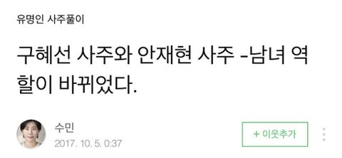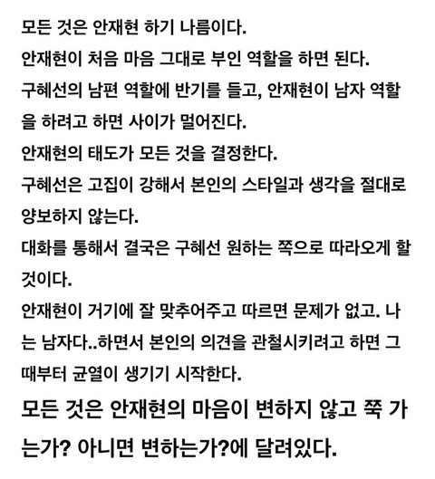 그래서 안재현만고분고분다참으면 이관계는계속간다? 사주풀이이상한듯 한쪽만희생하라는거임?