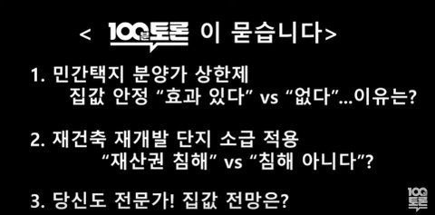 저희 방송은 '분양가 상한제'를 주제로 토론을 진행할 예정입니다.