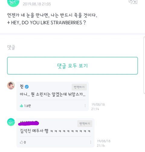 석찌 댓글에 어떤 아미가ㅋㅋㅋㅋ