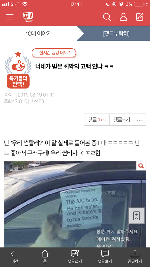 난 '우리 썸탈래?' 이 말 실제로 들어봄 중1 때 ㅋㅋㅋㅋㅋ 난 또 좋아서 구래구래! 우리 썸타자! ㅇㅈㄹ함