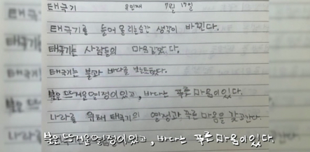 아이들에게 '태극기'를 주제로 시를 쓰게 했다고 함.