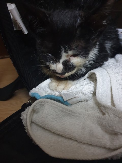 빗물을 대충 닦아주고 한숨 재우고 동물병원 데려감.