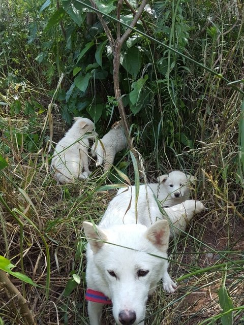 풀숲을 헤치며 구조하러온 낯선사람을 보고도 있는 힘껏 꼬리를 흔들며 새끼들쪽을 바라봤다고 합니다