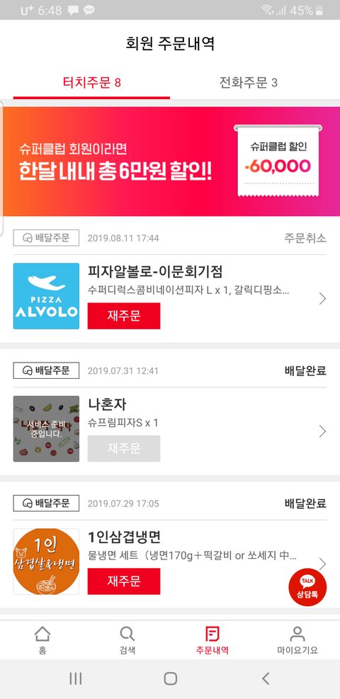 8월 11일에 요기요에서 선결제로 피자 배달을 시켰습니다