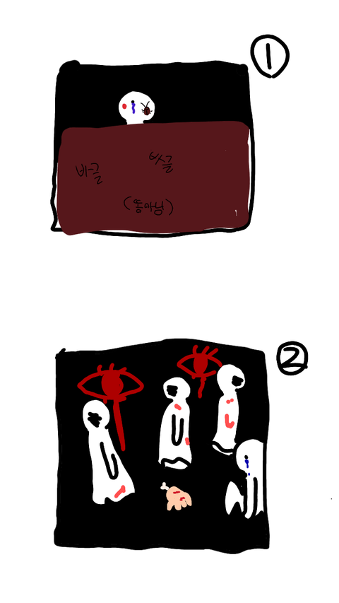 1. 방에 바퀴벌레로 가득차있음 딱 머리만 겨우 내밀수있고 목아래는 바퀴벌레들이 브글브글 거림 가끔 바퀴벌레몇마리가 머리위로 기어올라올수있음 귀에서 ㅈㄴ생색하게 바선생 asmr 들을수있음 근데 막 콧구멍이나 입이나 구멍에 벌레가 들어오거나 물거나 해는 안끼침 그냥 니몸주위에서 스믈스믈 기어다닐뿐임 발 잘못움직이면 바퀴밞아서 터질수도있음