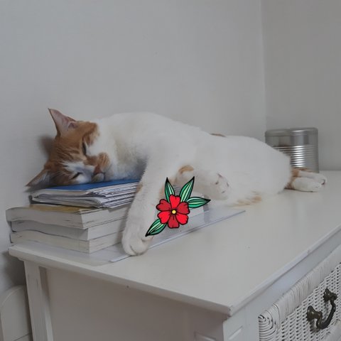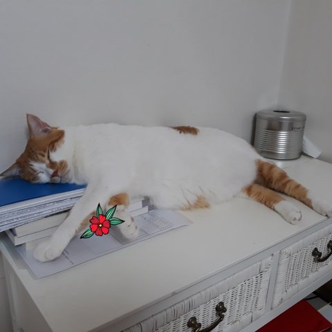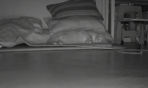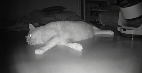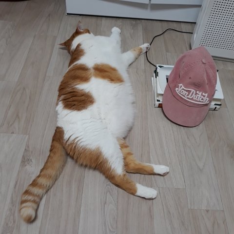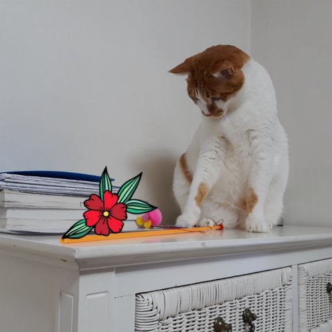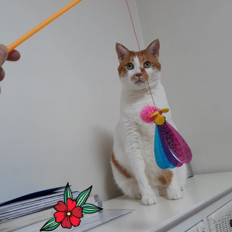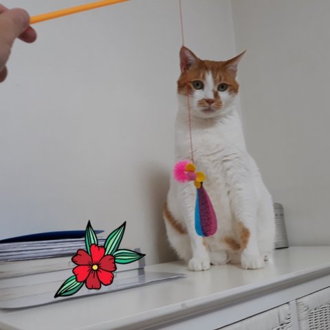 앞발만 깨작깨작? 장난감 건들고 있음.