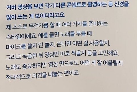 일단 이사람은 정말 노래를 좋아하는거같아. 자부심도 대단해 보여. 그리고 팬들을 정말 소중하게 생각하는거같아. 자존감이 높은 모습도 너무 본받고 싶다. 형과의 우애도 잠깐잠깐 보여주는게 정말 사랑받고 자란사람이란걸 알겠어.. 그리고 커버영상이든 방송출연이든 뭐하나 대충하지 않고 고심해서 하는거같아. 정말 내인생 최고의 아이돌 ㅜㅠㅠ