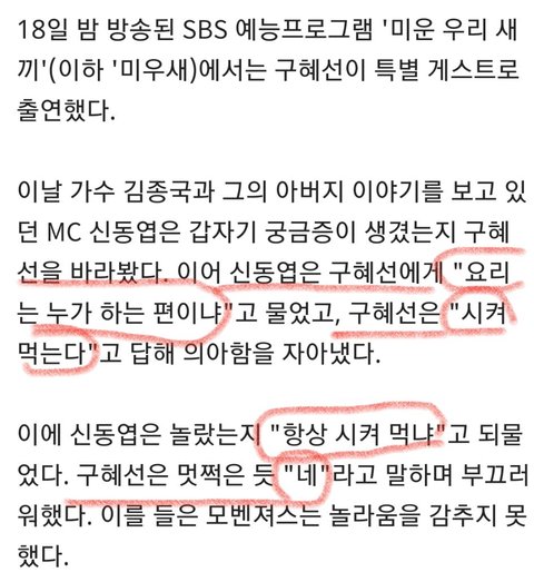 구혜선 세 끼 식사 항상 시켜 먹어