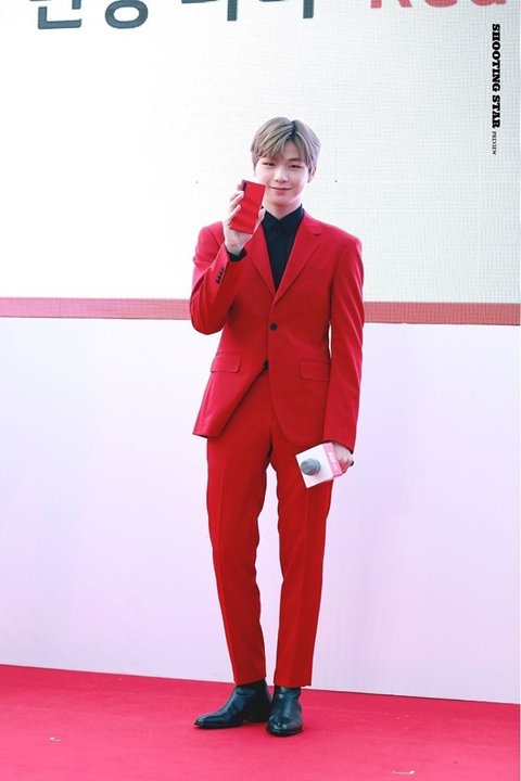 행사장에서도 빨간색 수트 입고 왔음