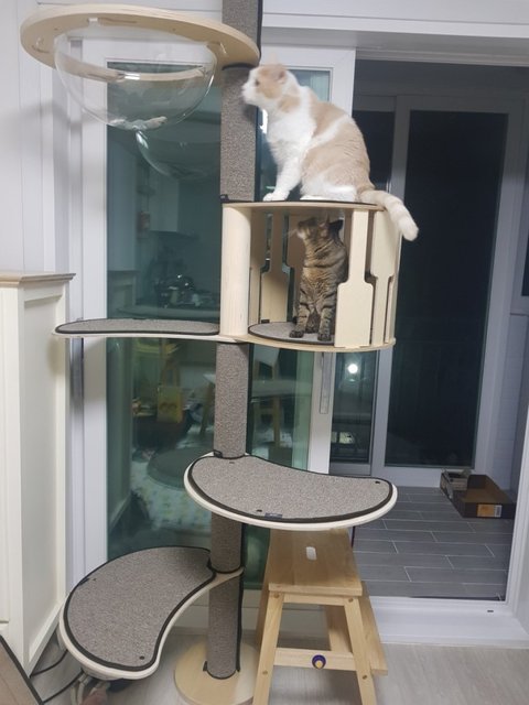 누나가 우리의 복지향상을 위해서 캣폴을 구매해줬다옹.