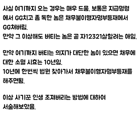근데 이미 신불자는 배째식이고 법원출석도 우숩게 암