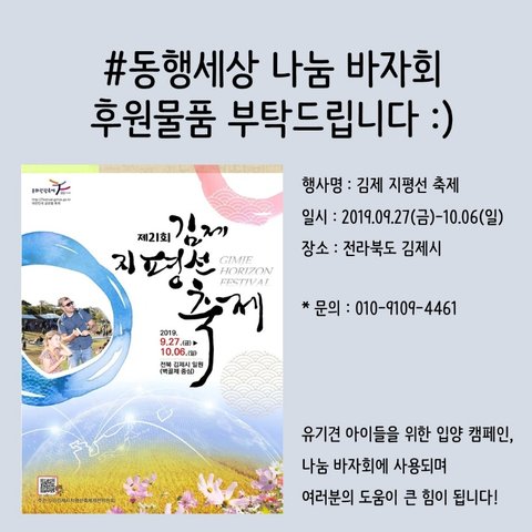 #김제지평선축제 #입양캠페인및바자회 #사지말고입양하세요 #유기견입양 #후원물품