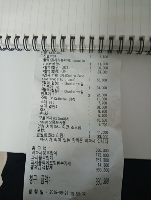 거기서 맛있는 냄새가 났던지 어쩐지 강아지가 그걸 먹고 백혈구 수치가 높아져서 입원했다네요