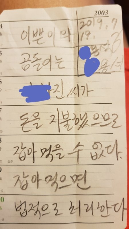 고깃값을 주고 돌아 서려는데 쬐끔 찝찝해서 서약서를 받아놨어요.