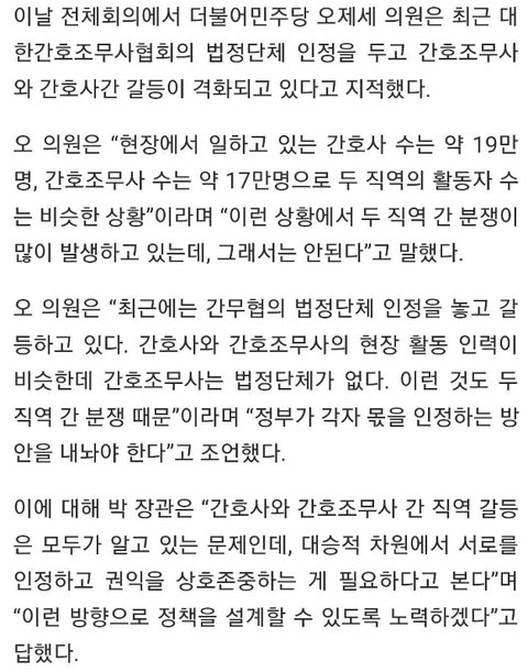 2. 오xx 국회의원 : 조무사들 저렇게 하는데 인정해주셈
