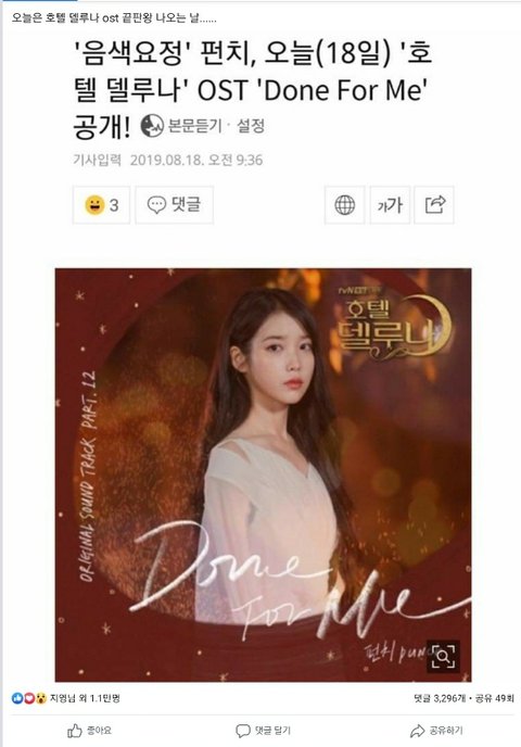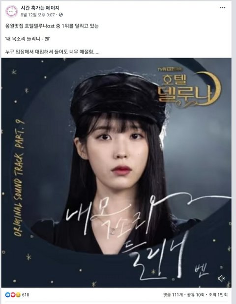 밑에는 호텔 델루나 광고 올린 같은 페이지에서 하는 다른 광고 예시