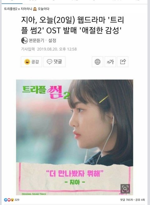 저런 글들 반복적으로 여러개 있음 저 가수OST 글만 4~5개 이상 있음