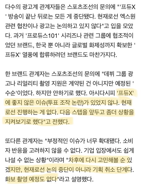 엑스원 광고,화보 다 취소됨