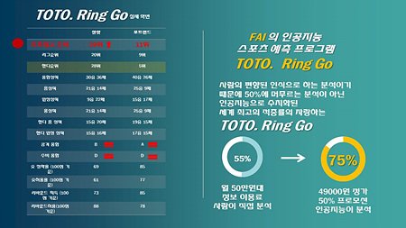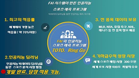 또한, 토토링고의 FAI 시스템은 구글의 알파고처럼 승패 적중의 실패 시 스스로 실패 요인을 분석 추후 승률을 높이는 학습으로 진화하여 적중률을 높여가는 시스템으로 현재 빅데이타 분야 특허 출원 중이다.