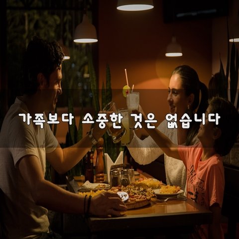 ♥ 가족보다 소중한 것은 없습니다 ♥ 가족이란늘 가까이에서 마주 보며,함께 생활하는 사람인지라흔히 소중함을 잊고 지냅니다. 하지만,어느 순간 자신의 아내나 남편이,곁에 없는 삶을 상상하면눈앞이 캄캄해짐을 느낍니다. 서로 바라보고 지켜주며마음의 의지가 되는 사람이 없다면,세상 속에 홀로인 것처럼외롭고 공허할 뿐만 아니라살아야 할 의미가 사라지는 것입니다. 사랑하는 가족이 없다면많은 재물을 모으고,부귀와 영화를 누린다 한들무슨 의미가 있으며 즐거움이 있을까요? 비록 무심하고 뚝뚝한 남편이나바가지와 잔소리꾼의 아내라 할지라도,서로에게 보이지 않는 그늘이자마음의 버팀목인 아내와 남편이란 이름은, 세상 속에서당신이 꿋꿋하고,당당하게 살아갈 수 있게 하는힘의 원천입니다. 곁에 있기에소중함을 잊고 사는 사람,당신의 아내와 남편에게한 세상 다하는 마지막 순간까지마음을 다해 사랑하세요. 가족보다 소중한 것은 없습니다. 당신이 꿈을 꾸며 살아야 하는 이유는바로 가족입니다. 꿈과 소망을 함께 키우며사랑의 동반자로 함께 가는 세상에,둘도 없는 소중한 내 사람바로 당신의 남편과 아내입니다. - 간직하고 있었던 책 갈피 中 -