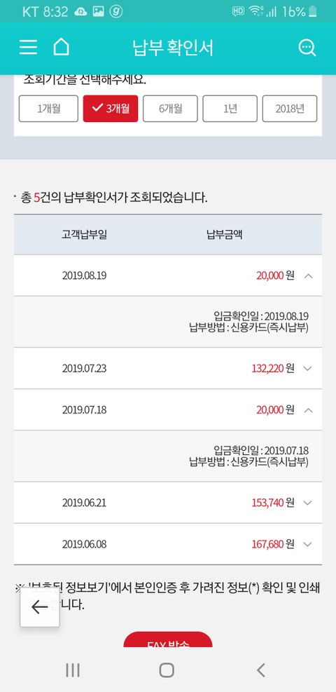 이전달(7월납부금액)에도 요금이 조금덜나온거같았는데 별신경안썻는데